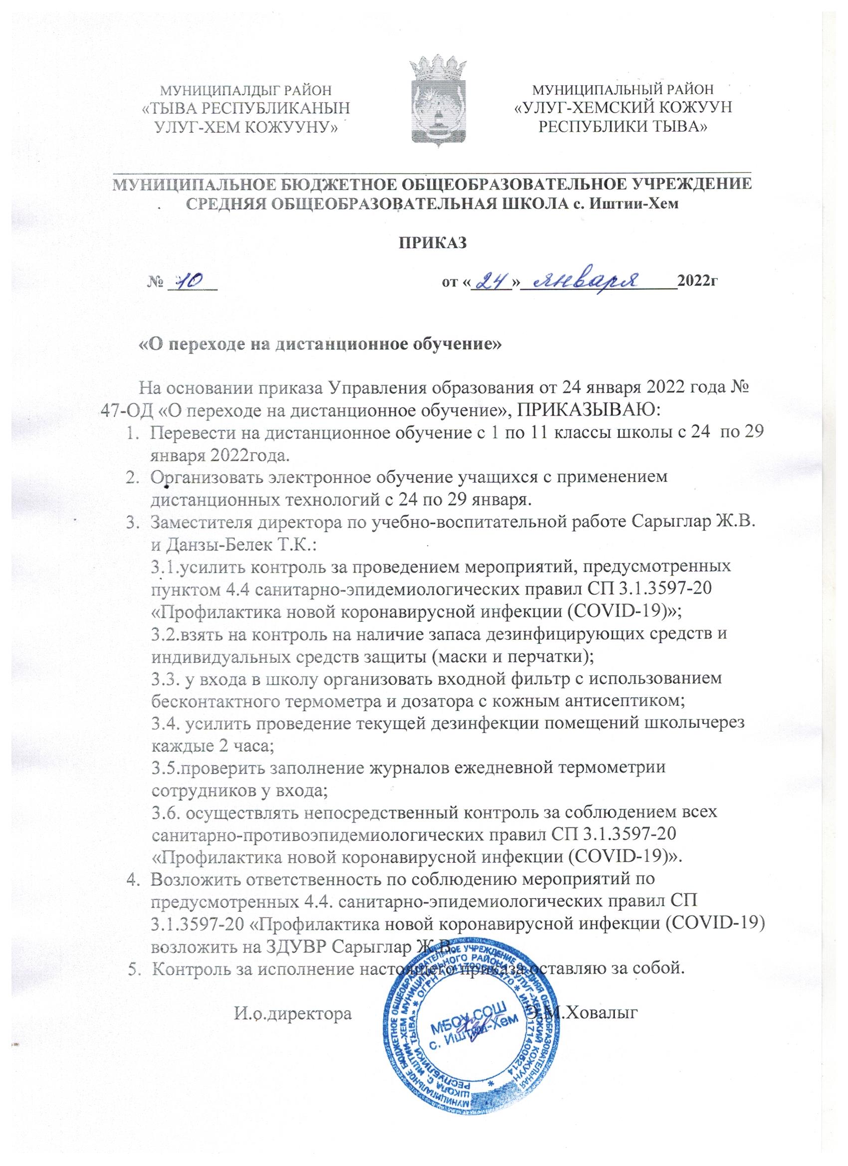Нормативно-правовые акты Приказ-№37.1-О-продлении-Дист.-обучения-от-07.02.2022г.Скачать Приказ-О-переходе-школы-на-дист.-обучение с 29 января по 05 февраля 2022 годаСкачать Приказ-МБОУ-СОШ-с.-Иштии-Хем-О-переходе-в-ДО с 24 по 29 января 2022 годаСкачать metod_recom_RFСкачать инструкция-для-учителя-1Скачать приказ УО-641-об-организации-электр.обучения.-dfСкачать Положение МБОУ СОШ с. Иштии-Хем -об-орг.-электр.-обучения-и-исп.-дист.-техн.Скачать Приказ-МБОУ-СОШ-с.-Иштии-Хем-О-закрытии-на-карантин-1-1Скачать Приказ-О-переходе-на-дистнционное-обучение-№47ОД-2Скачать