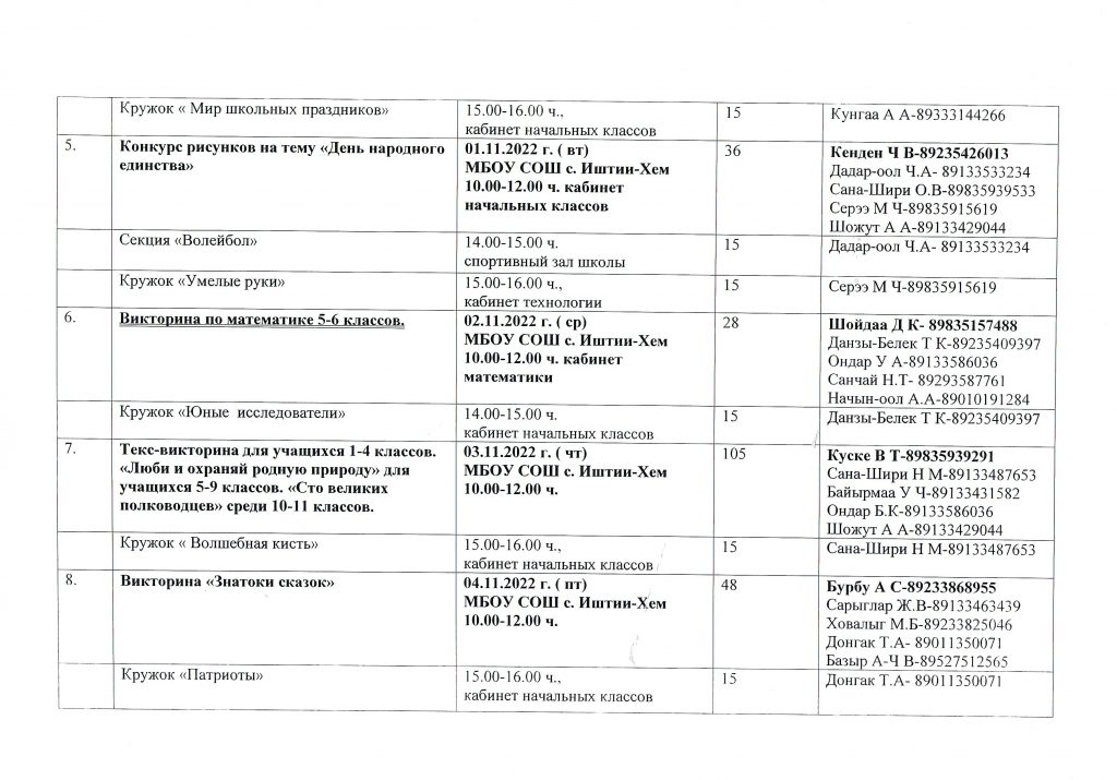 План осенних каникул МБОУ СОШ с. Иштии-Хем с 29 октября по 06 ноября 2022 года